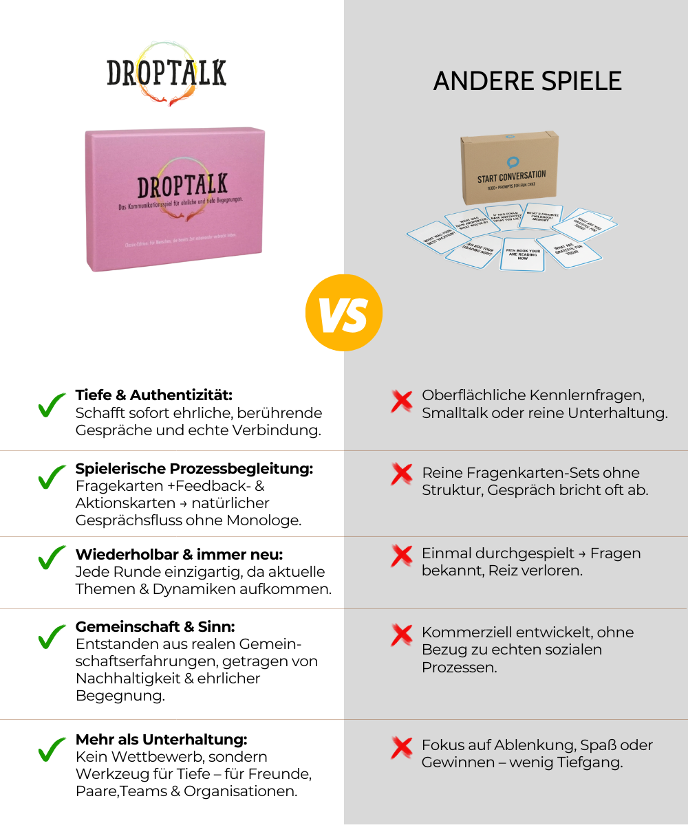💬 Tiefe & ehrliche Gespräche - Fördert echte Begegnung, die weit über Smalltalk hinausgeht.