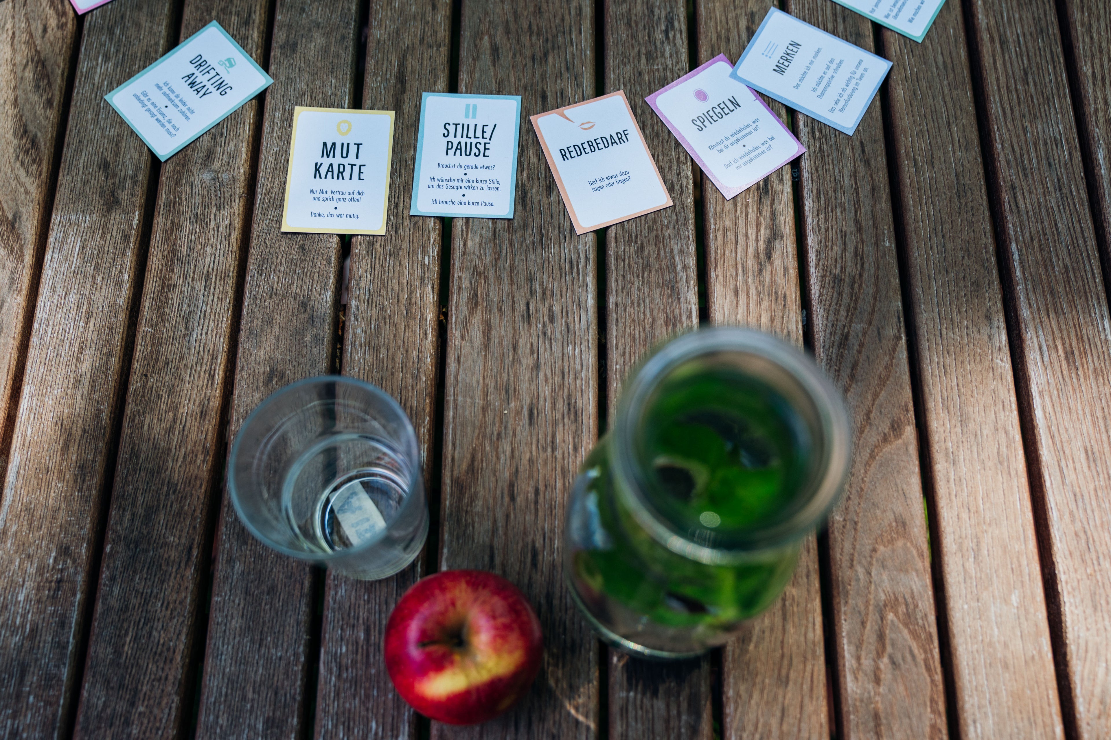 Indem du Karten wie Danke, Lass dir Zeit, Mutkarte oder Drifting Away legst, unterstützt du den Mensch der gerade spricht im Redefluss und gemeinsam schafft ihr eine sichere wertschätzende Atmosphäre in der alles angesprochen werden kann.